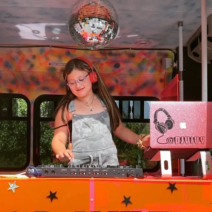 Our mobile DJ booth features 10 year old DJ Vivy!